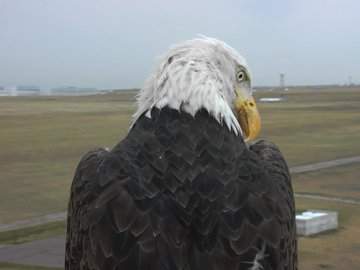 Bald Eagle Flys Into Denver International Airport Poses For A Portrait